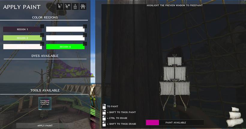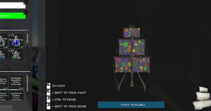 The menu on the right are the paints you need to put in your inventory.