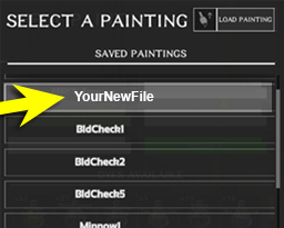 a menu called SAVED PAINTINGS with your new file just below.