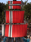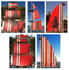 Black and white stripes on a red background.
